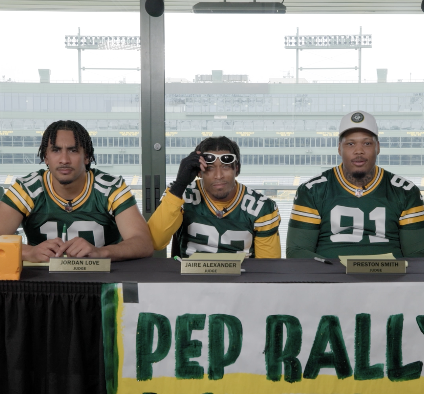 Video sketch for the 2024 schedule reveal starring players and famous Packers fans.